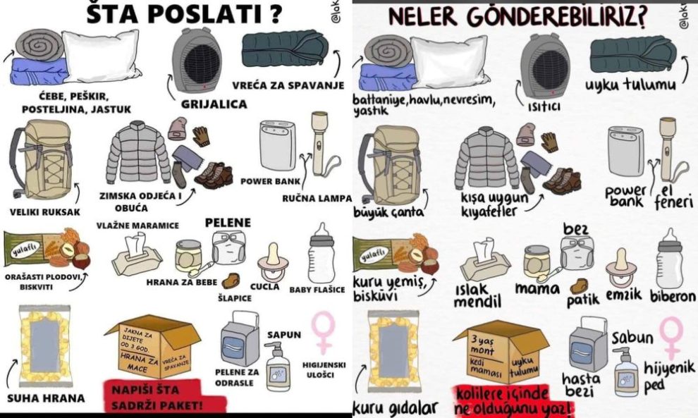 Na paketima bi bilo dobro napisati šta se u njima nalazi (konzervirana hrana, zimska odjeća, higijenske potrepštine, deke i sl.)