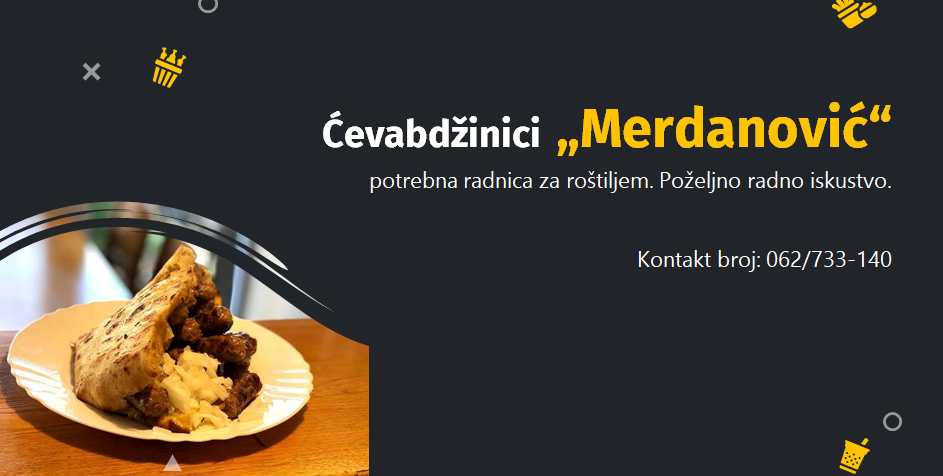 Ćevabdžinici “Merdanović” u Zenici potrebna radnica za roštiljem.