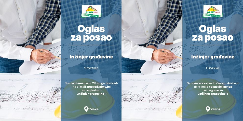 Oglas za posao: Inžinjer građevine- Almy d.o.o. Zenica objavljuje konkurs za prijem u radni odnos: