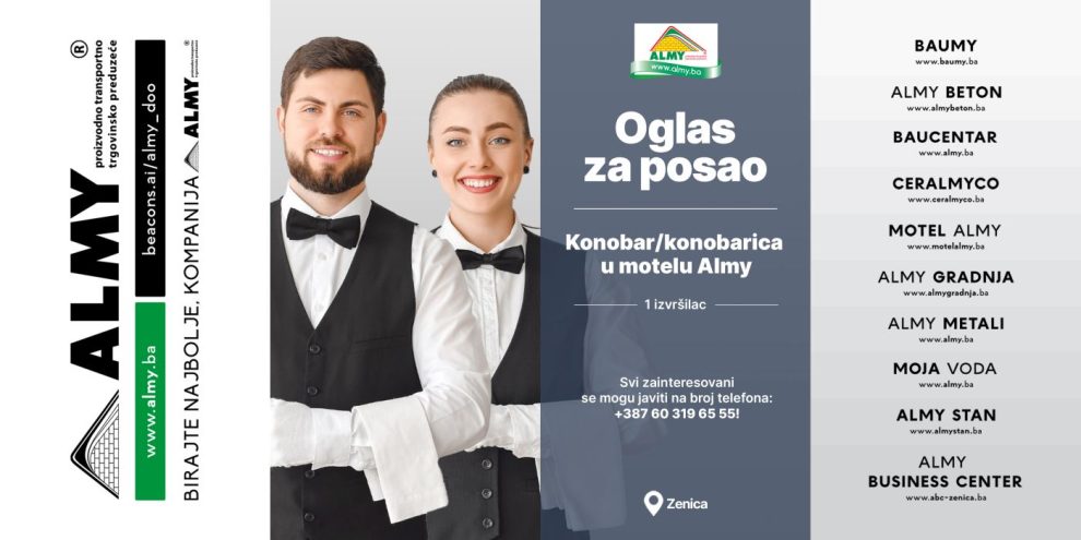 Almy d.o.o. Zenica objavljuje konkurs za prijem u radni odnos: