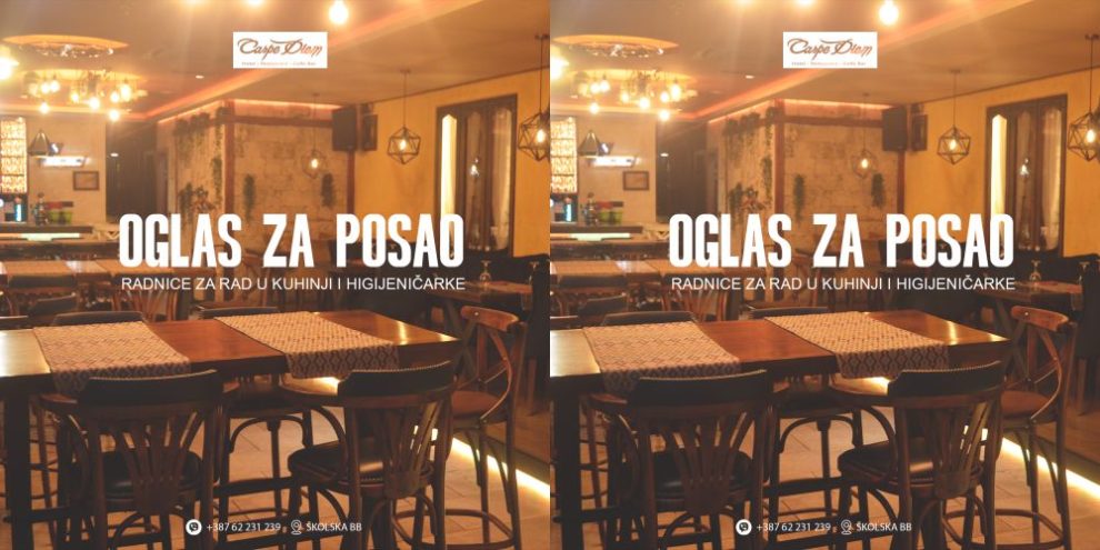 Oglas za posao: Kuharica, pomoćna kuharica i konobar/konobarica- Carpe Diem restoran iz Zenice je u potrazi za više radnika.