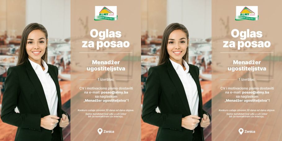 CV i motivaciono pismo dostaviti na e-mail: [email protected] sa naglaskom „Menadžer ugostiteljstva“