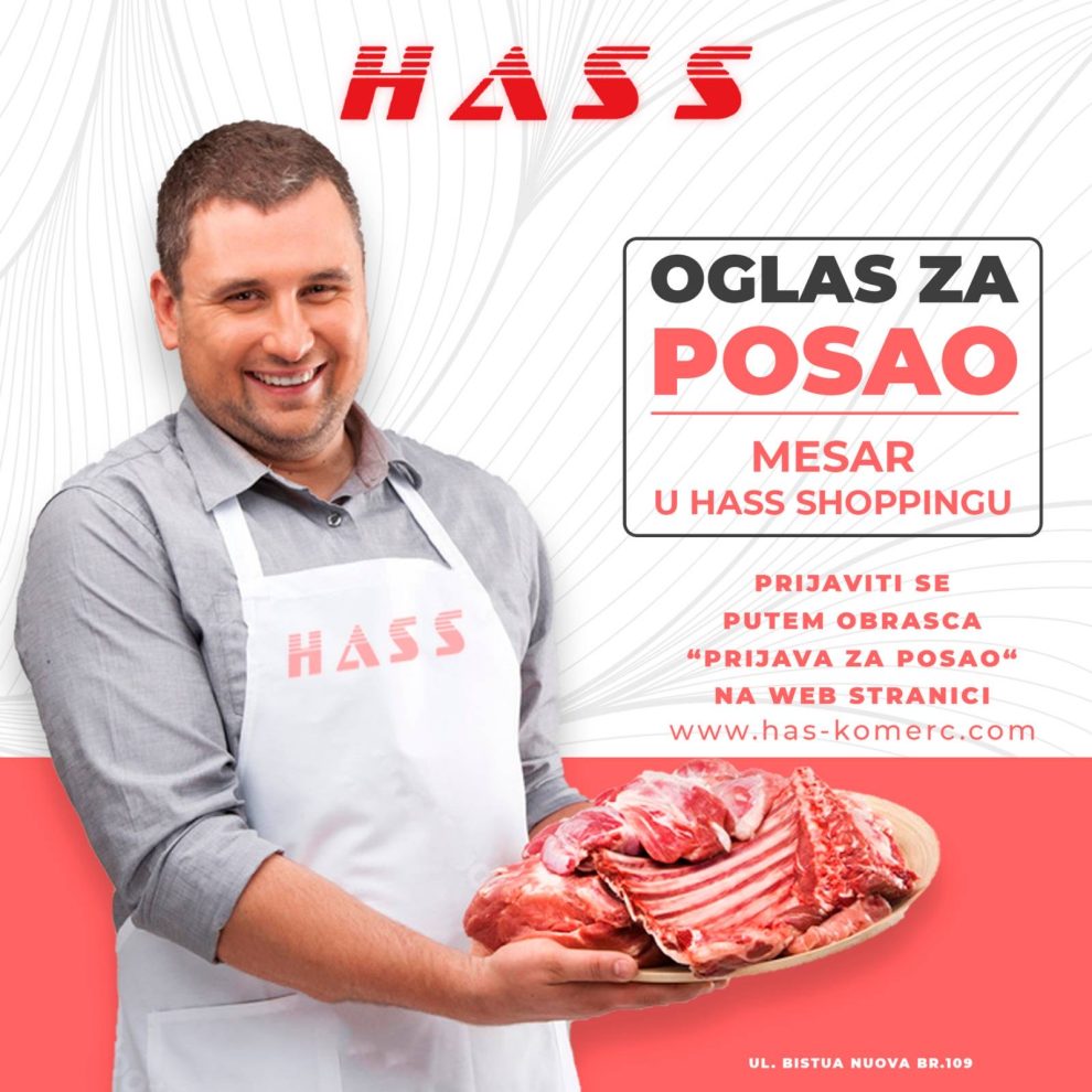 Oglas za posao: Mesari- Povodom otvaranja renovirane poslovnice HASS ŠOPING (ul. Bistua Nuova br.109) i proširenja asortimana, firma Hass komerc doo Zenica objavljuje oglas za prijem u radni odnos na sljedećim pozicijama: