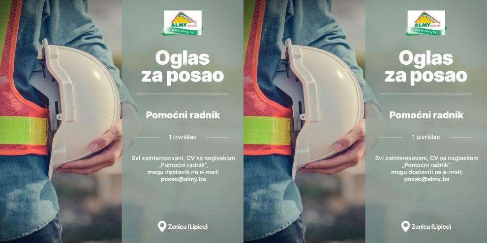 Oglas za posao: Pomoćni radnik- Almy d.o.o. Zenica objavljuje konkurs za prijem u radni odnos: