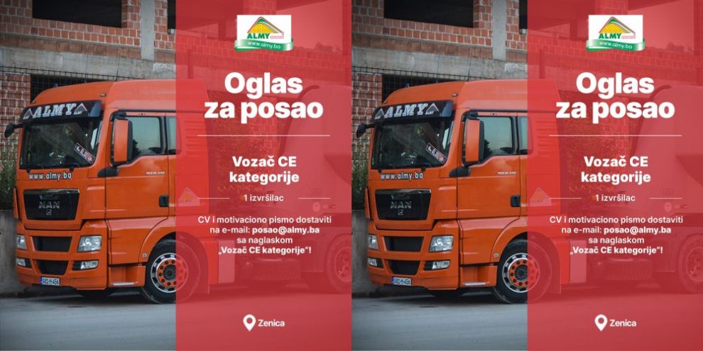 Almy d.o.o. Zenica objavljuje konkurs za prijem u radni odnos: