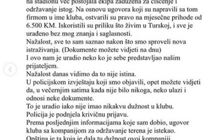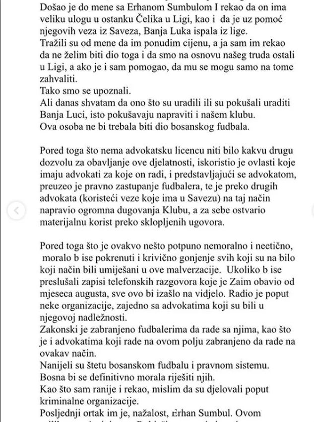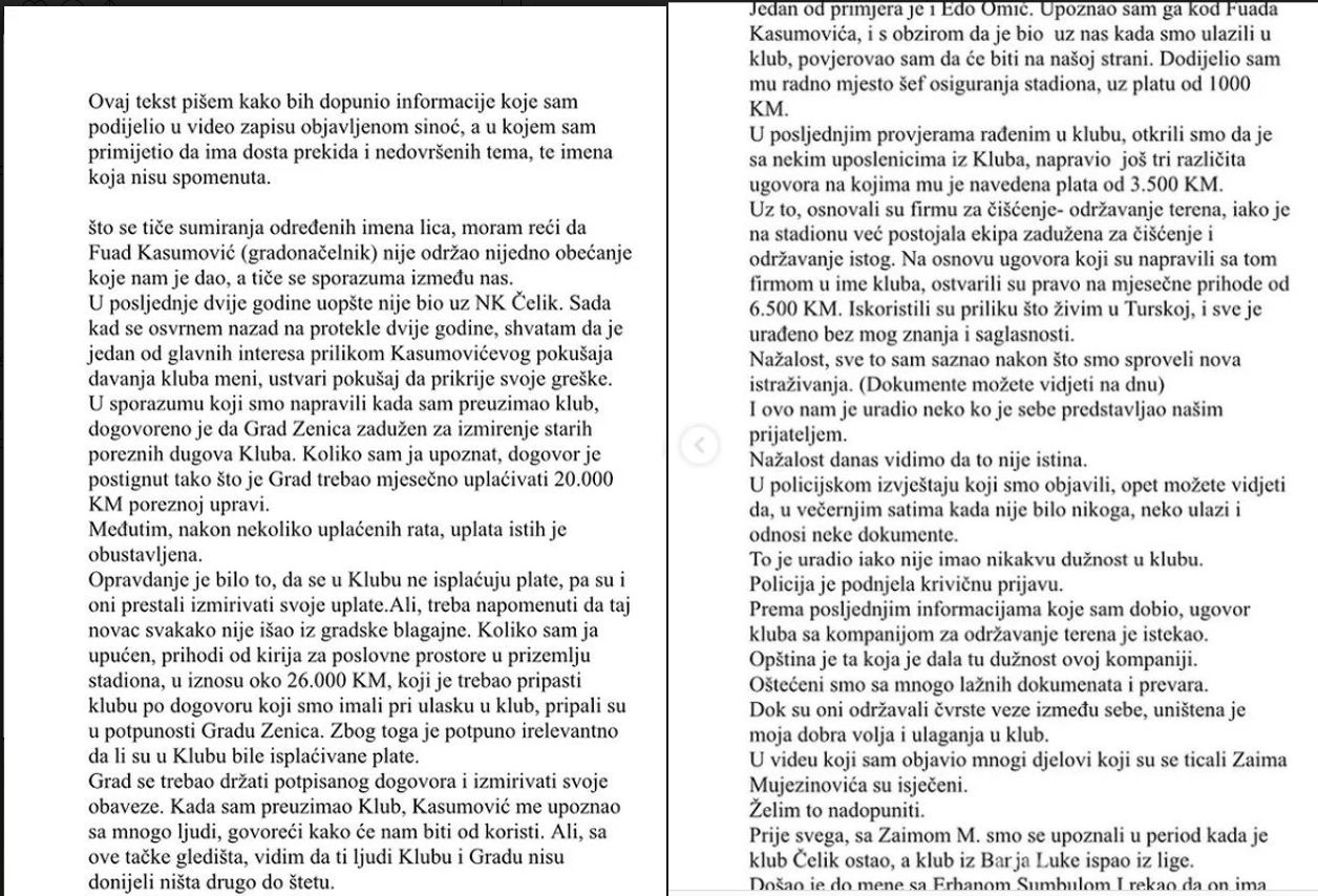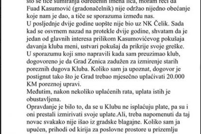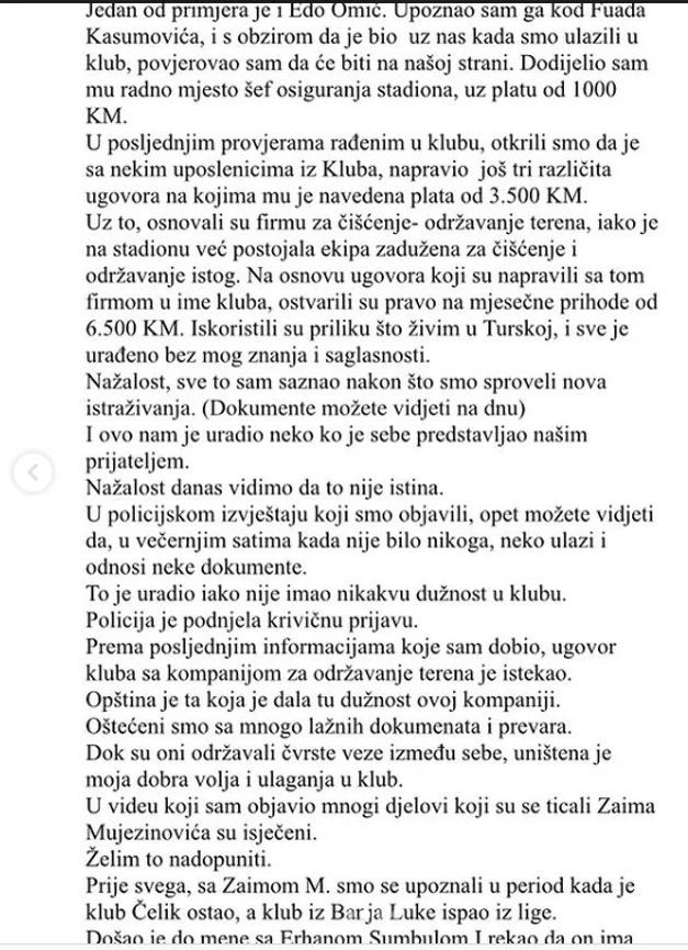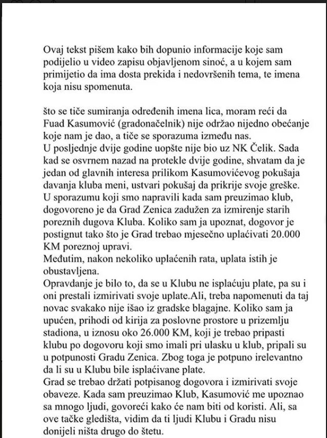 No, Olgun je kasno sinoć javnost putem istog Instagram profila obavijestio javnost da je klip “isječen”, te da su iz njega izbačeni neki bitni dijelovi, te je obećao naknadno ih objaviti. Olgun je ispunio obećanje, te pismeno poslao poruku navijačima Čelika u kojoj je istakao da gradonačelnik Zenice Fuad Kasumović “nije ispunio nijedno obećanje koje je dao”.