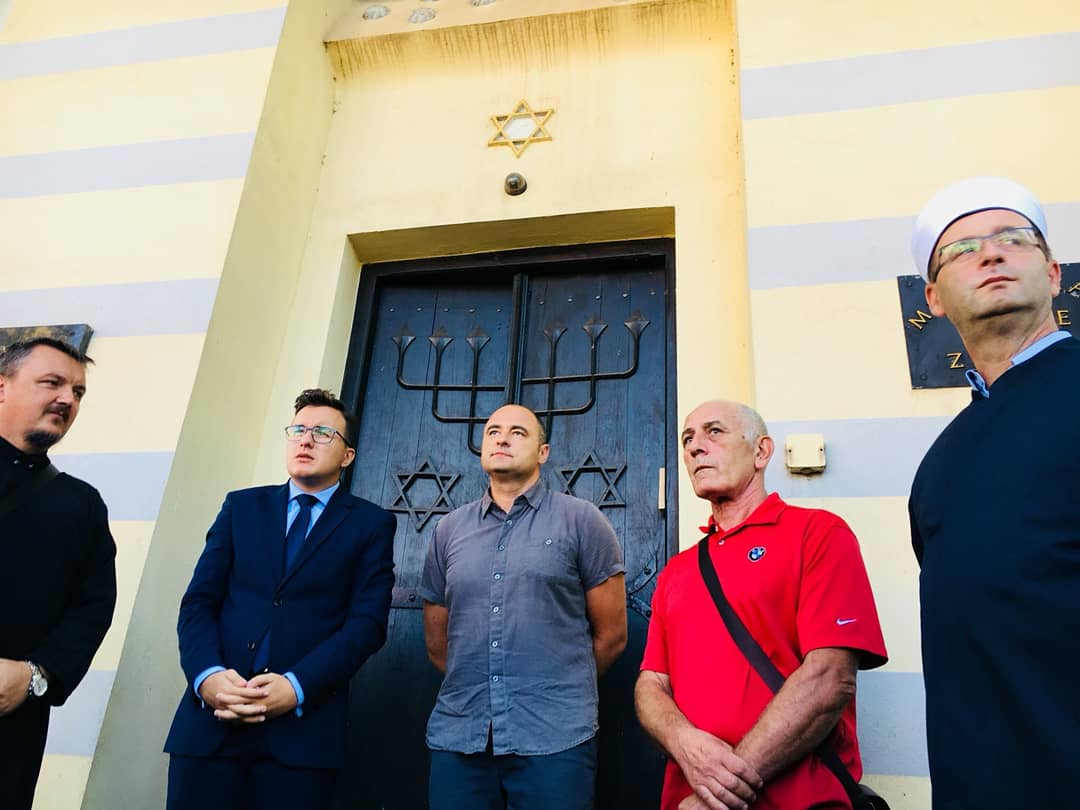 Ovim putem javnost obavještavamo i o nedavnom skrnavljenju fasade zeničke Sinagoge. S nadom da se ovakvi događaji neće ponavljati, šaljemo Vam srdačne pozdrave.