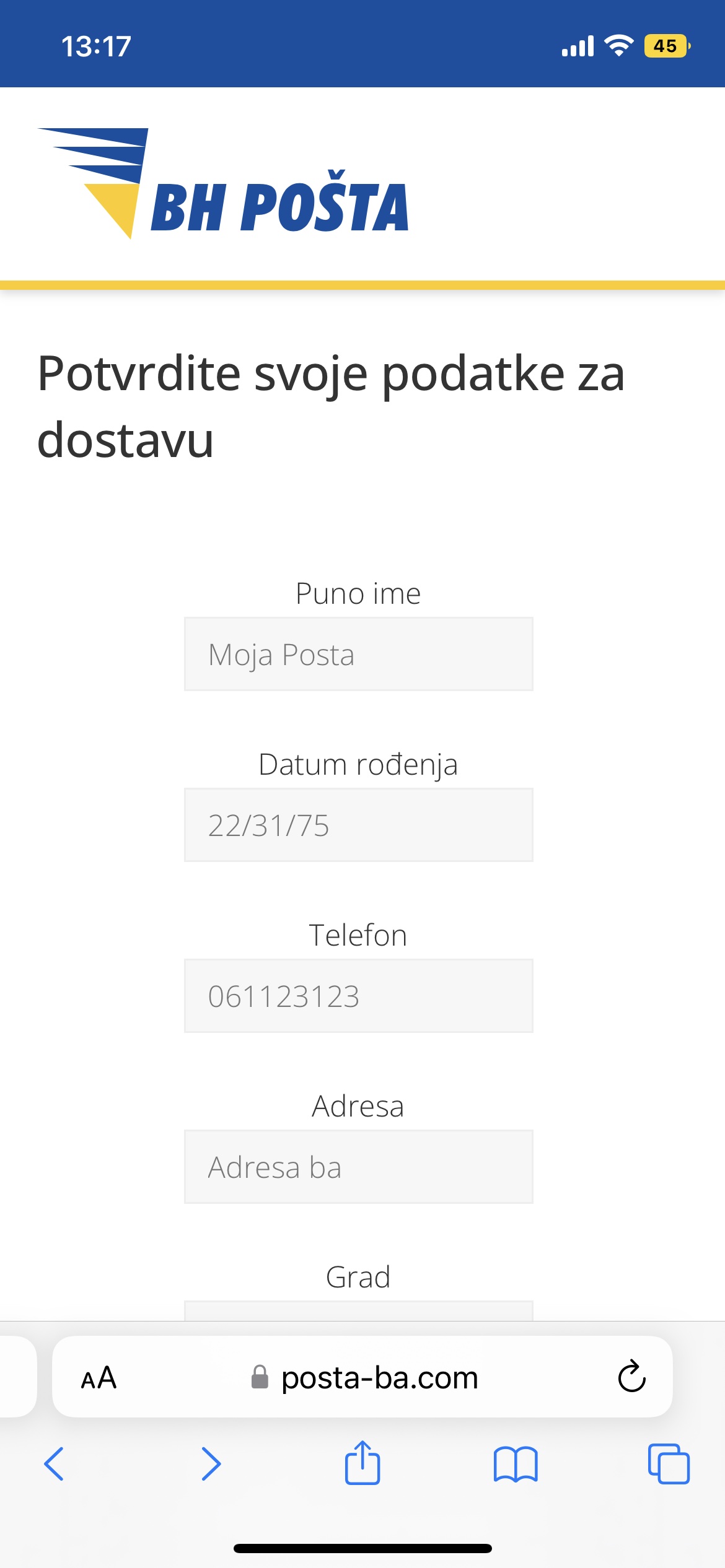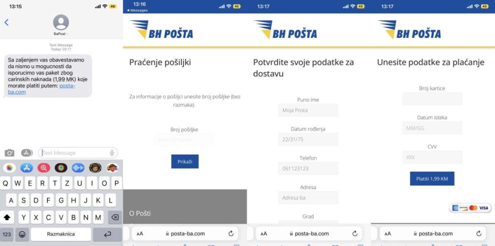 – Zanimalo me gdje “trenutak” kad se “prelomi”, jer je korišten logo, podaci, sve izgleda naizgled kao zvanična poruka BH Pošte. Naravno, znajući šta se radi i da prava Pošta ili bilo koja institucija neće tražiti te podatke, “lupao” sam i lažne podatke,da vidim “dokle”…I na četvrtom koraku su tražili podatke koji nemaju veze sa pameću, ali nažalost, mnogo ljudi nasjedne i upiše ih… kaže naš sagovornik…