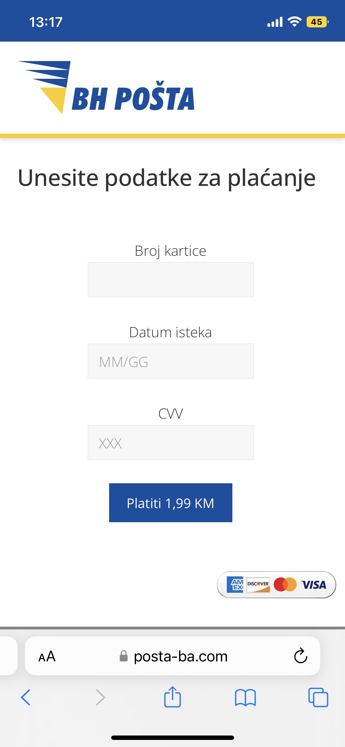 Posebno ističemo da BH POŠTA NE TRAŽI SVOJIM KORISNICIMA LIČNE PODATKE U SMISLU BROJA KARTICE I DRUGE SIGURNOSNE PODATKE I DA JE SVAKI TAKAV POKUŠAJ NAJVJEROVATNIJE POKUŠAJ ZLOUPOTREBE.