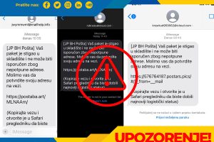 Već ranije, u nekoliko navrata, BH Pošta je naglasila i pozvala korisnike svojih usluga i građane da su SMS poruke o prispjeću pošiljki, u kojima se traže dodatni podaci i lični podaci, kao i novac – LAŽNI.