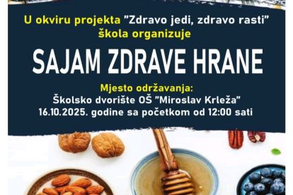 OŠ “Miroslav Krleža” Zenica: Na Sajmu zdrave hrane učenici, nastavnici i roditelji prikupili 7.030 KM za Restoran “Dobre volje”- U Osnovnoj školi „Miroslav Krleža“ proteklog četvrtka održan je Sajam zdrave hrane, događaj koji je spojio edukativni, kreativni i humanitarni karakter.