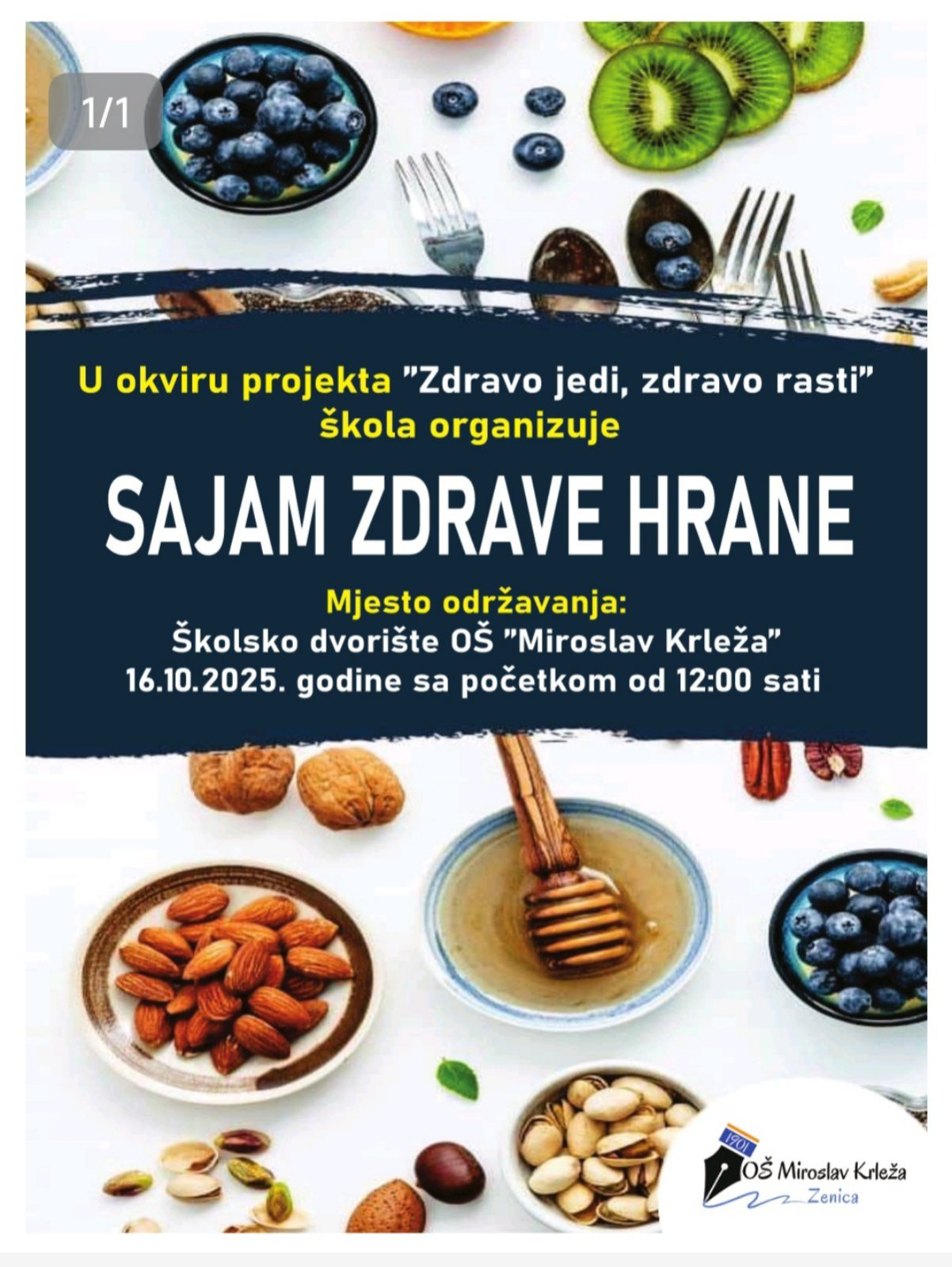 OŠ “Miroslav Krleža” Zenica: Na Sajmu zdrave hrane učenici, nastavnici i roditelji prikupili 7.030 KM za Restoran “Dobre volje”- U Osnovnoj školi „Miroslav Krleža“ proteklog četvrtka održan je Sajam zdrave hrane, događaj koji je spojio edukativni, kreativni i humanitarni karakter.