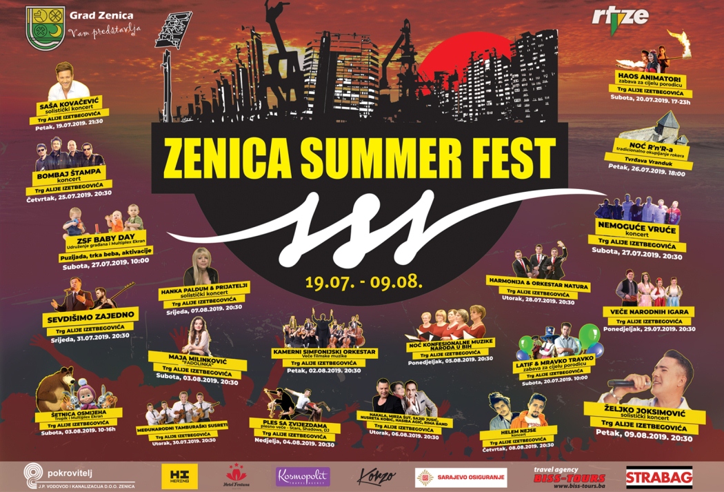 Zenica Summer Fest – Početak i otvorenje ZSF-a održano je 19.07.2019. na Tgu Alije Izetbegovića, spektakularnim koncertom Saše Kovačevića. Tu noć na glavnom zeničkom trgu, po procjenama, okupilo se blizu 30 000 Zeničana, Zeničanki, zeničke dijaspore, ali i posjetilaca iz drugih bh gradova.
