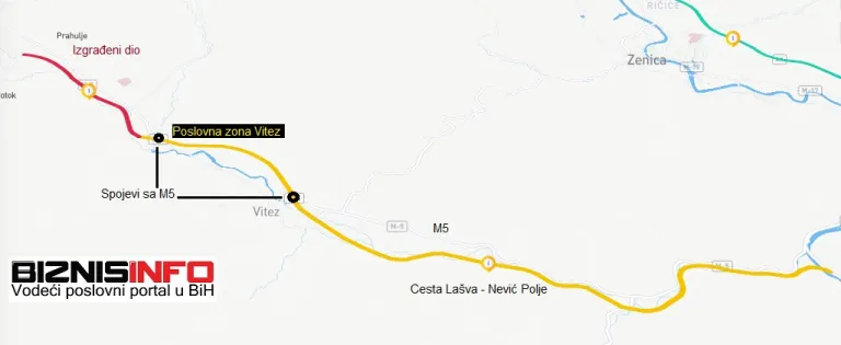Dakle, nova brza cesta će prolaziti po liniji sadašnje magistrale. Pojasnimo, riječ je o poslovnoj zoni u kojoj se nalaze brojni poslovni subjekti, među kojima je najpoznatiji FIS Vitez. Ovo je ujedno jedna od najvećih šoping zona u Federaciji a magistrala prolazi kroz samo njeno središte.