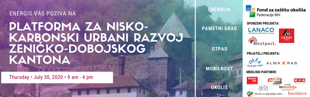 Otvorene prijave za Platformu ZDK – Mjesec juli osim konferencije u Sarajevo obilježit će i konferencija u Zenici, koja će se održati 30.07. 2020. godine u Hotelu Dubrovnik sa početkom u 09:00h u okviru projekta „Platforma za nisko-karbonski urbani razvoj FBiH“, u organizaciji udruženja Energis i Fonda za zaštitu okoliša FBiH.