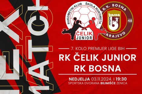Uokviru 7. kola Premijer rukometne lige BiH, RK Čelik Junior će dočekati ekipu RK Bosna iz Sarajeva.
