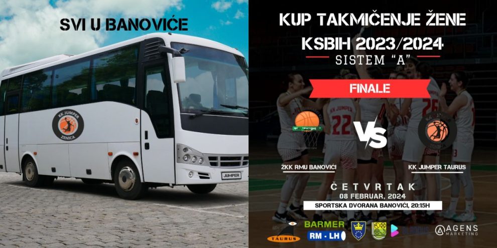 Finalna utakmica: ŽKK RMU Banovići vs KK Jumper Taurus, četvrtak 20:15 sati, Sportska dvorana Banovići, polazak sa parkinga Arene u 17:30 sati, broj mjesta ograničeno na 50.