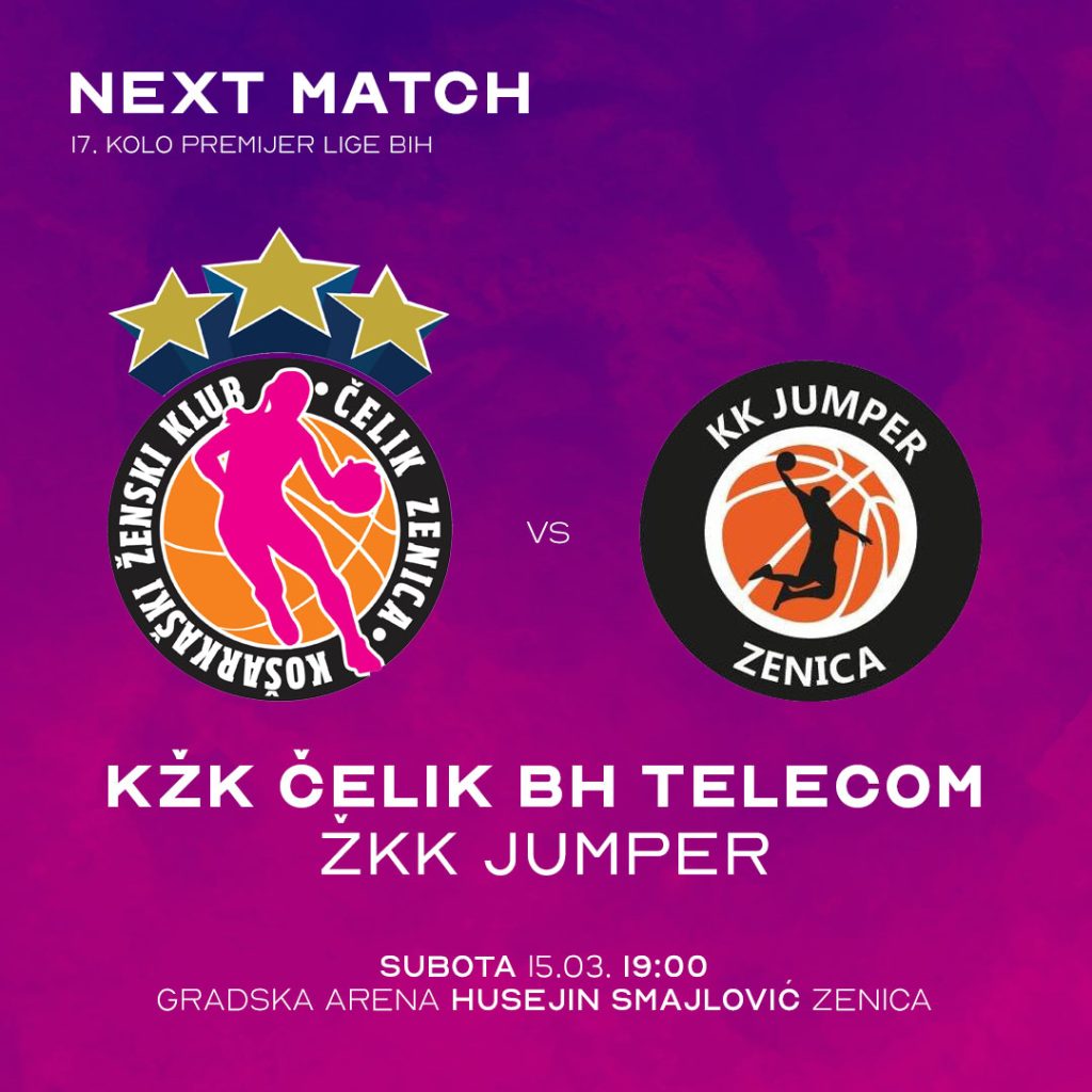 U okviru 17. kola Premijer lige BiH za košarkašice, u Gradskoj areni “Husejin Smajlović” odigrat će se gradski derbi između KŽK Čelik BH Telecom i ŽKK Jumper Zenica.
