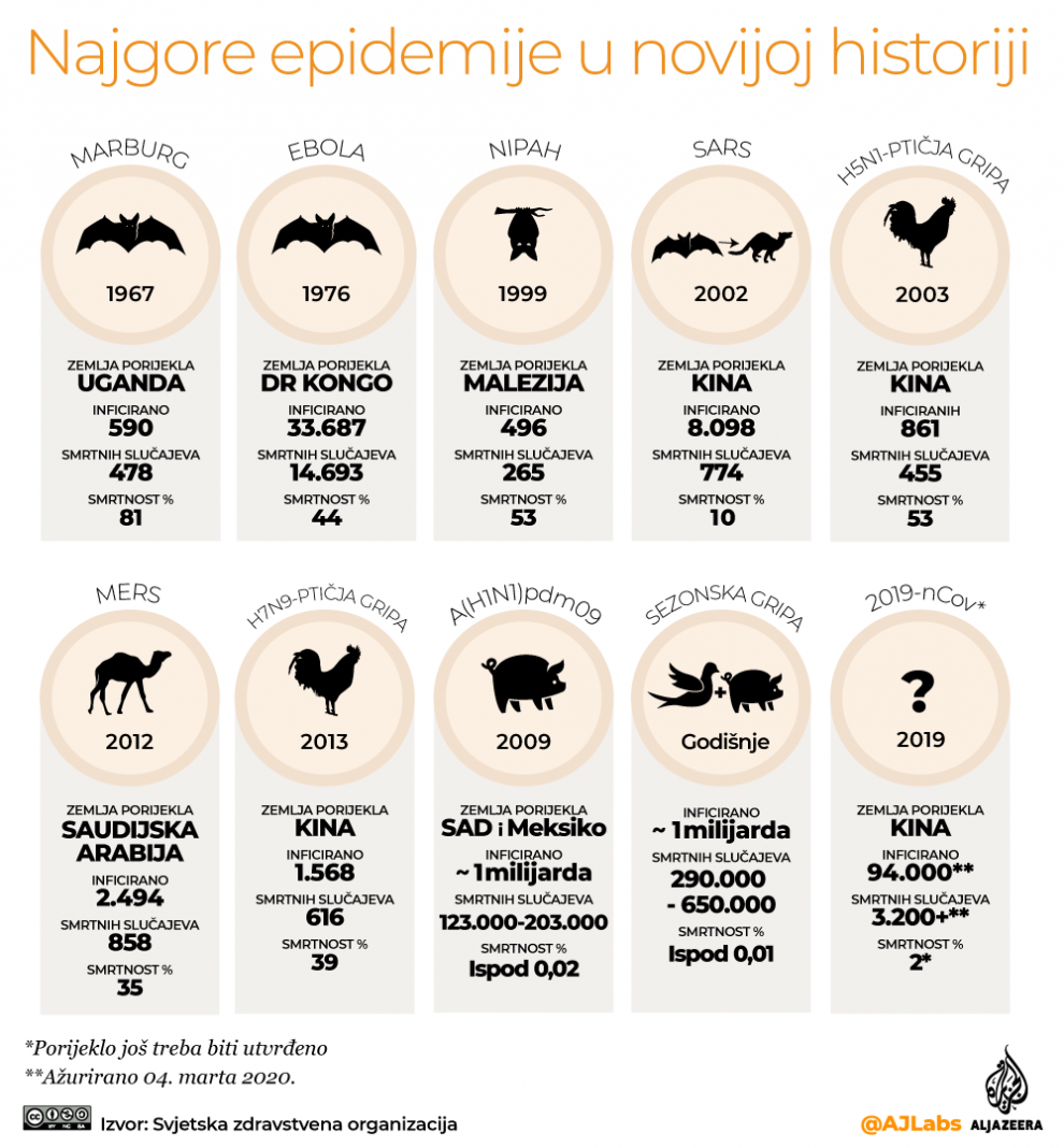 Ozbiljnost korona virusa – poređenje epidemija – Uporedili smo najgore virusne epidemije koje su se, u novijoj historiji, sa životinja prenijele na čovjeka.