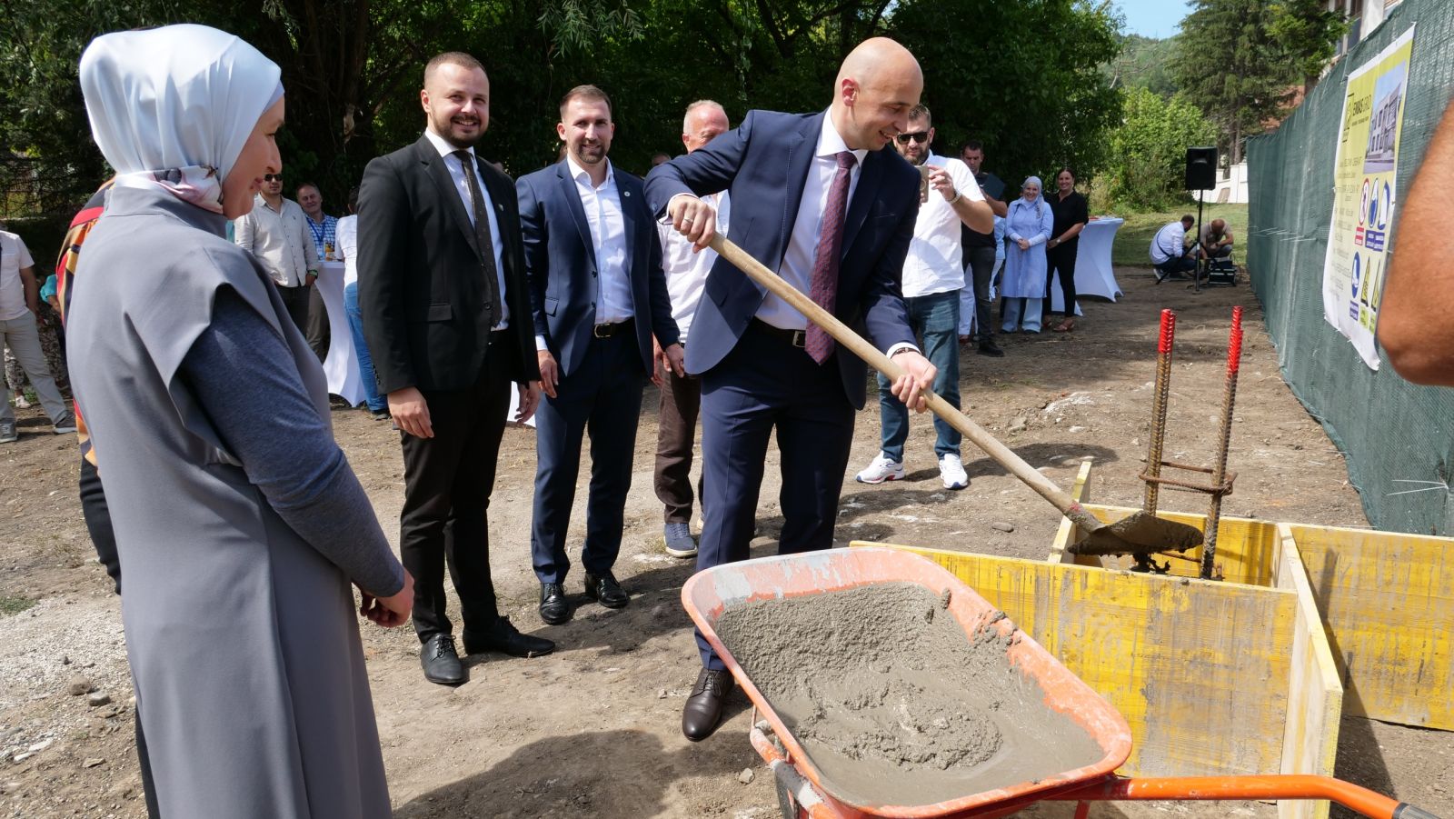 Kamen temeljac položili su premijer Zeničko-dobojskog kantona Nezir Pivić, kantonalni ministar za rad, socijalnu politiku i izbjeglice Antonio Šimunović, federalni ministar za rad i socijalnu politiku Adnan Delić, gradonačelnica Zavidovića Erna Merdić Smailhodžić te direktorica Centra za socijalni rad Mirnesa Husanović. Događaju je prisustvovao i kantonalni ministar za privredu Samir Šibonjić.