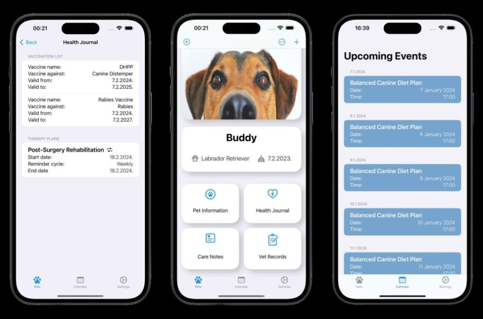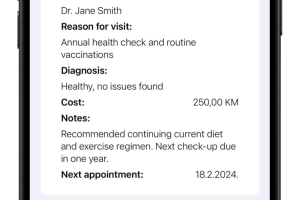 Upravljanje terminima: Zakazujte i nadgledajte posjete veterinaru, frizeru i terapijskim sesijama. Sinhronizujte s vašim kalendarom za podsjetnike.