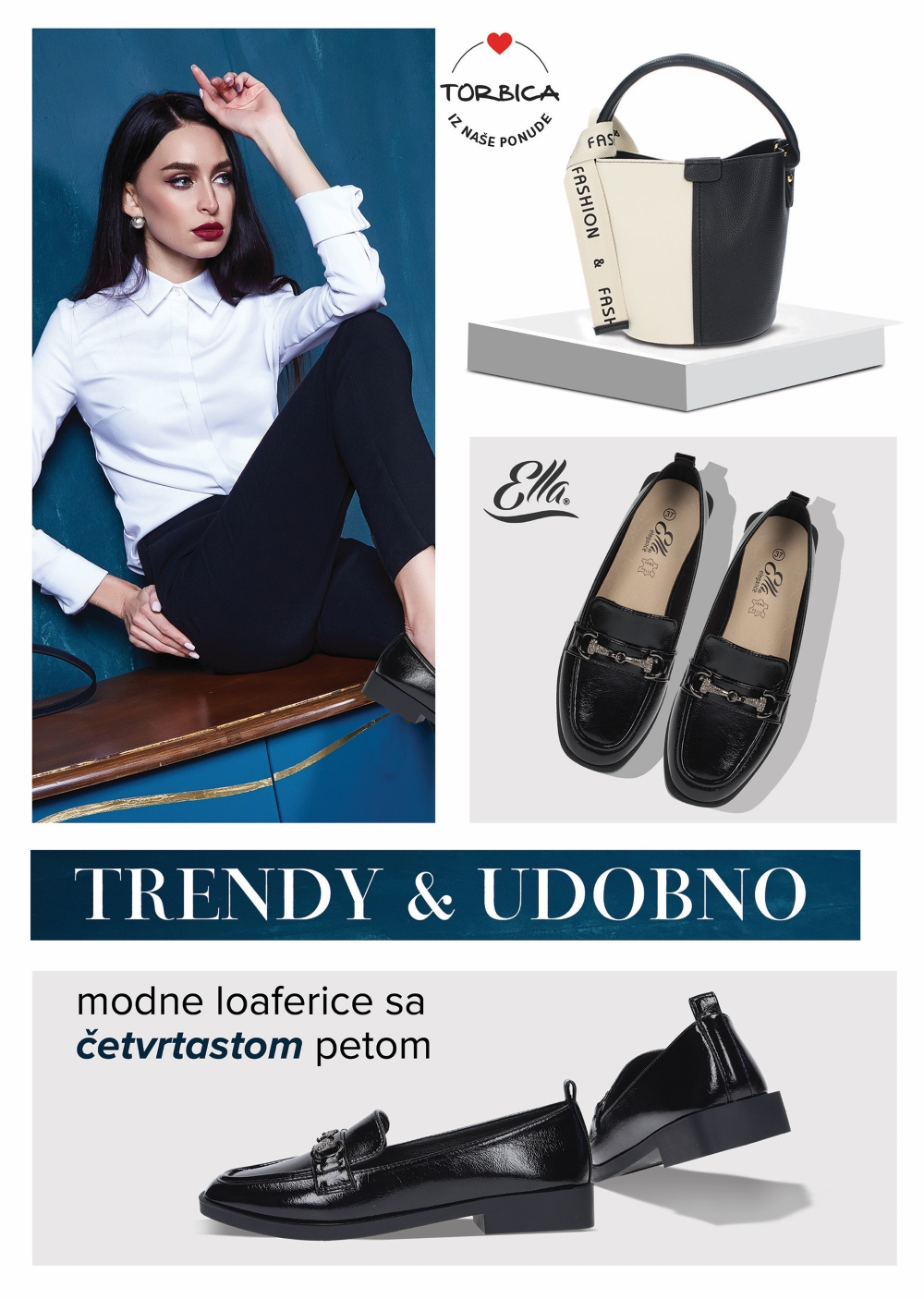 Apsolutni jesenski hit ove sezone su ženske modne cipele – loaferice u crnoj boji sa lak premazom koje će se izvrsno uklopiti u svakodnevne odjevne kombinacije ali značajno obogatiti poslovni i večernji look, muške kožne elegantne cipele u crnoj i smeđoj boji te urbane casual cipele koje su idealan izbor za modernog muškarca koji traži udobnost i stil te izdržljivost i sofisticiran izgled i dječije atraktivne gumene čizmice obložene toplom i mekom podstavom, simpatičnim dizajnom, osigurane uzicom oko gležnja kako ne bi upadala kiša.