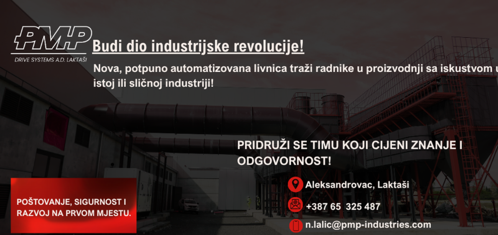 PMP Drive Systems A.D. Laktaši – nova, potpuno automatizovana livnica traži radnike u proizvodnji!- Imaš iskustvo u livnici ili sličnom radnom okruženju?