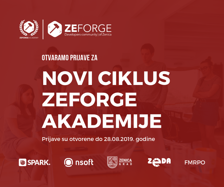 Počinje novi ciklus jednogodišnje ZeForge Akademije – Nakon uspješno završenog prvog ciklusa ZeForge Akademije i 5 polaznika koji su do kraja završili Početni i Frontend modul ZeForge Community otvara prijave za novi ciklus. Ovaj put se uvodi novina u smislu načina pohađanja same Akademije, te pored 40 polaznika sa kojima će se direktno savladavati tehnike programiranja u dvije grupe otvara se mogućnost i za još 40 polaznika putem distance learning odnosno pohađanja bez fizičkog prisustva na nastavi.