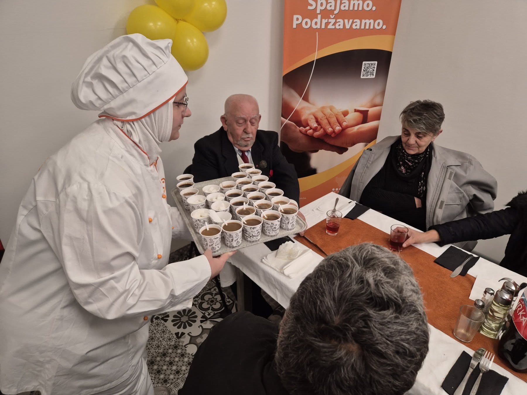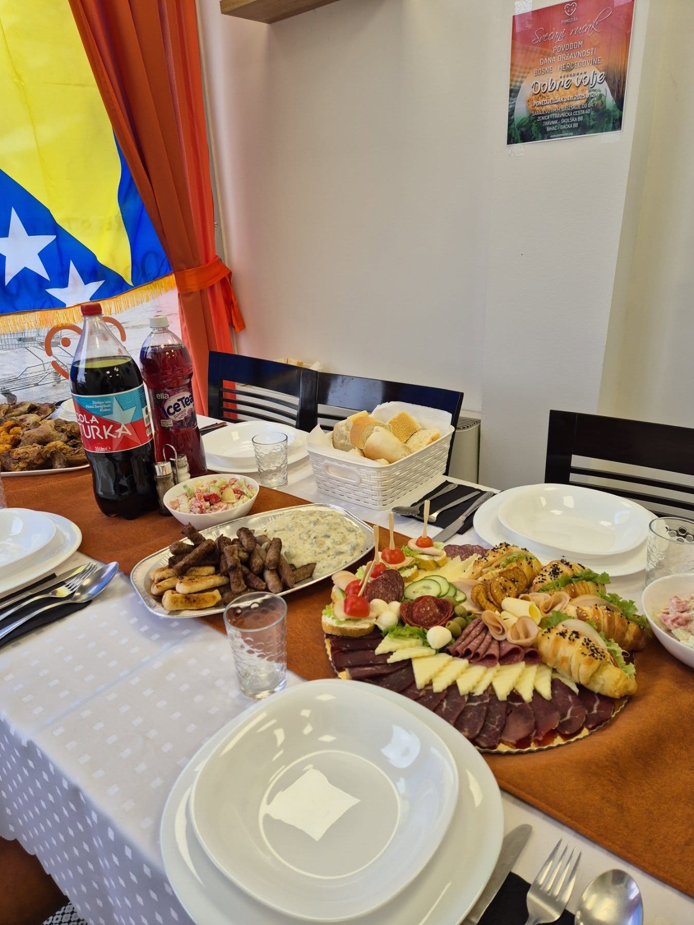 Organizacija Pomozi.ba danas je u svojim Restoranima dobre volje u Sarajevu, Travniku, Bihaću i Zenici upriličila svečani ručak povodom Dana državnosti Bosne i Hercegovine. Ručak je poslužen u 12 sati na svim lokacijama, a prisustvovalo mu je nekoliko stotina korisnika, među kojima su bili starije, socijalno ugrožene osobe.