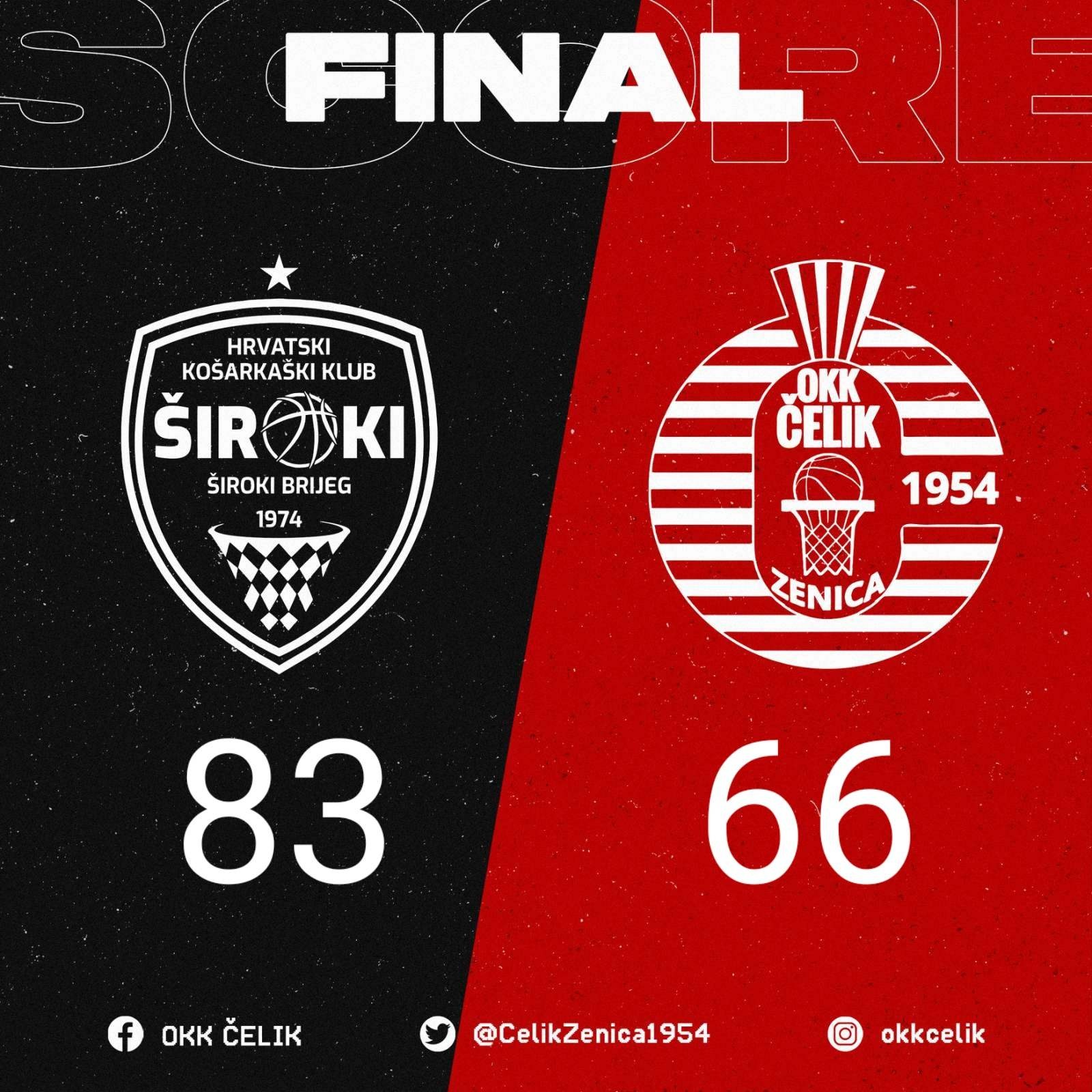 HKK Široki – OKK Čelik 83:66 (25:16), (12:25), (17:13), (29:10);