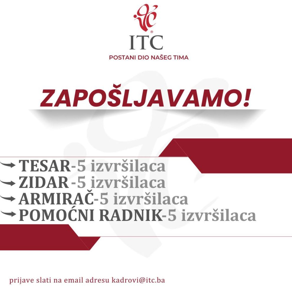 Na osnovu ukazanih potreba Generalni direktor ITC Zenica d.o.o. raspisuje oglas za popunu upražnjenih radnih mjesta