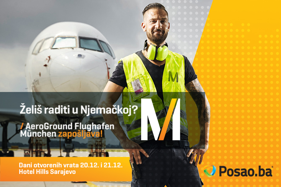 U saradnji sa portalom Posao.ba, kompanija AeroGround Flughafen München GmbH traži radnike/ce iz BiH na više pozicija u Minhenu. Osim traženih kvalifikacija na određenoj poziciji, potrebno je poznavanje njemačkog jezika na razini B1, certifikat nije potreban. Više informacija o radnim pozicijama možete pogledati ovdje.