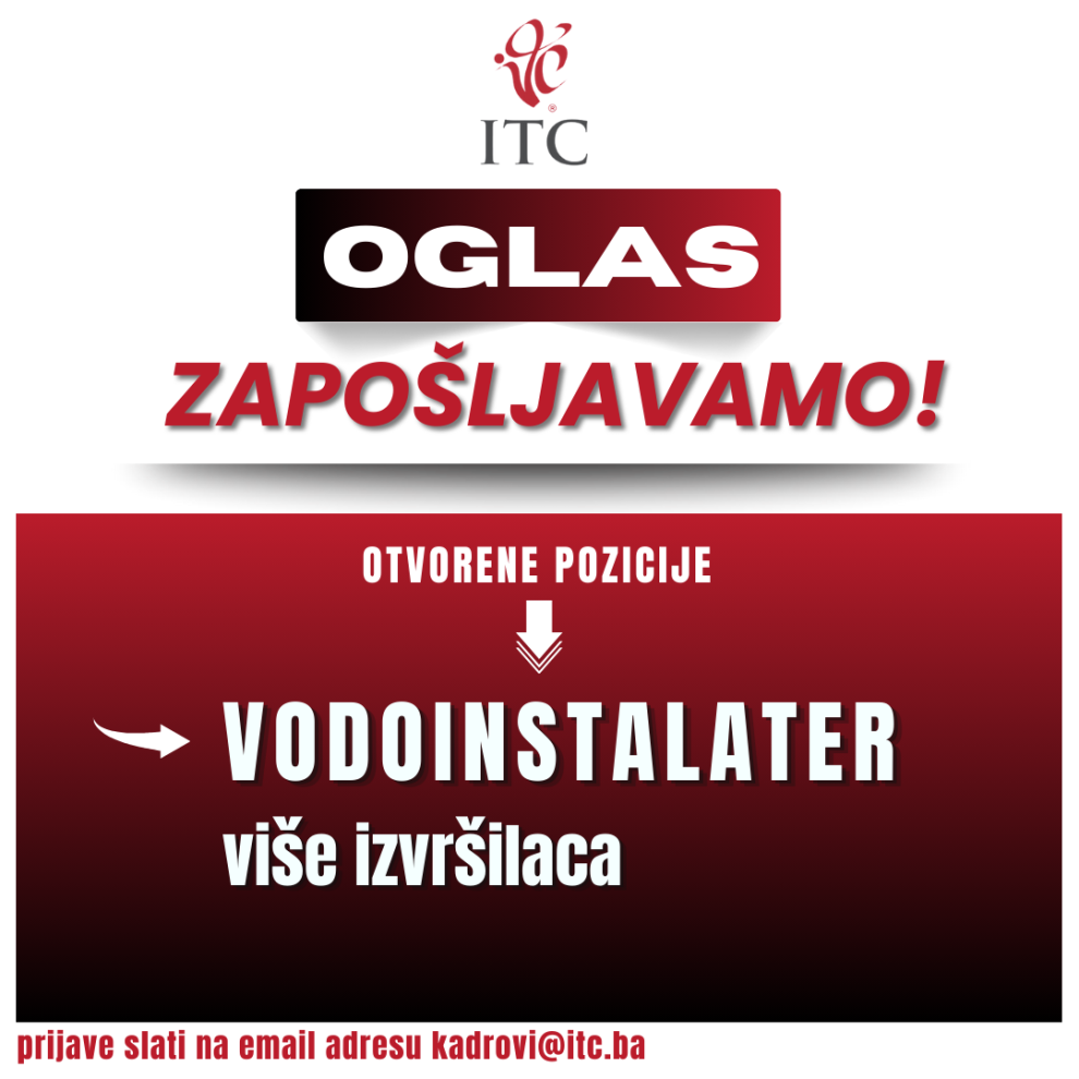 Zbog povećanja obima poslovanja objavljujemo oglas za popunu sljedećih radnih mjesta: