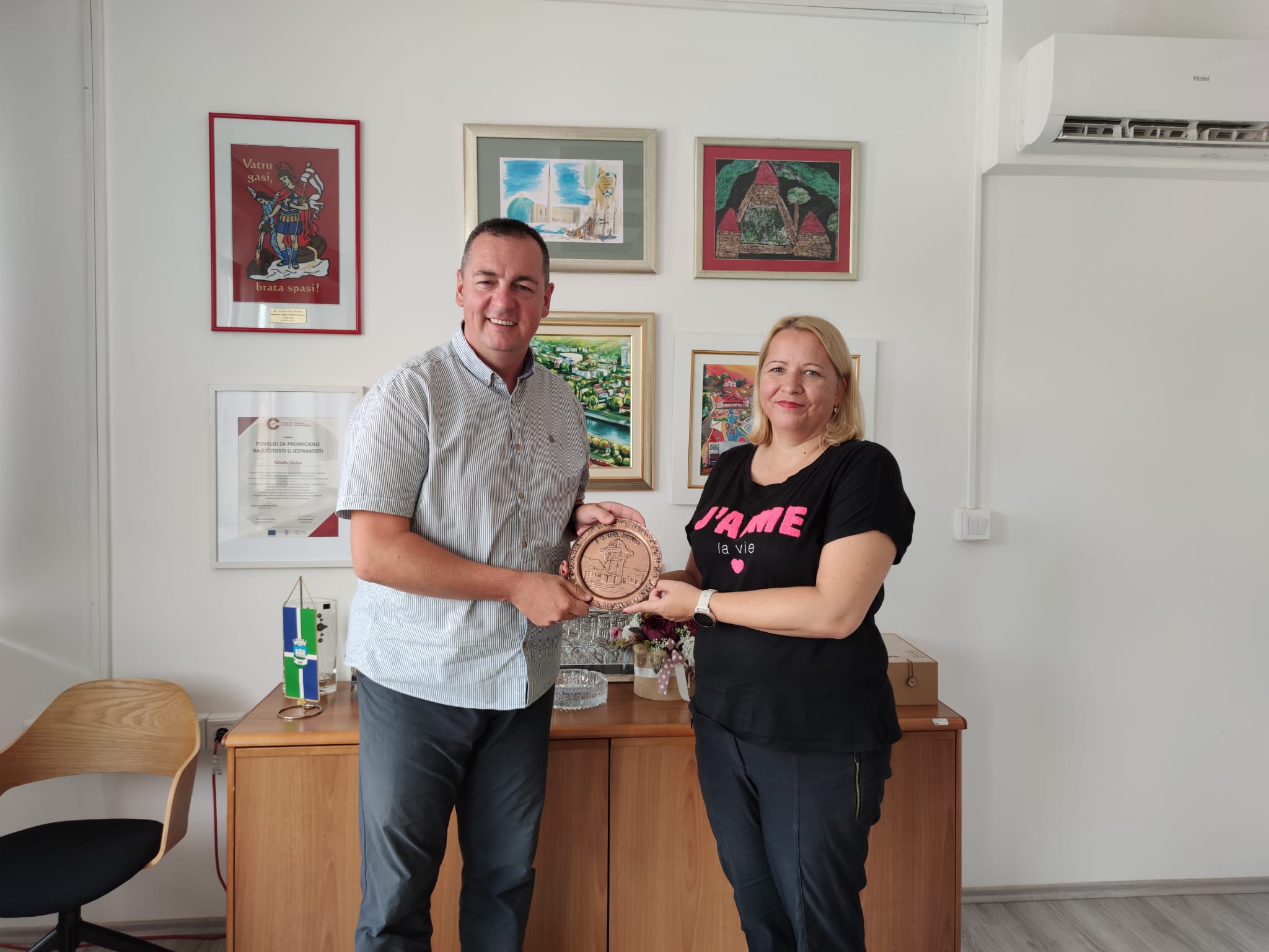 Prvi dan posjete imali smo sastanak sa gradonačelnicom Siska Kristinom Ivić Baniček sa kojom smo imali ugodan i konstruktivan sastanak na kojem smo se dogovorili da ćemo raditi na zajedničkim projektima i aktivnostima kojima će se promovisati prijateljstvo i partnerstvo.
