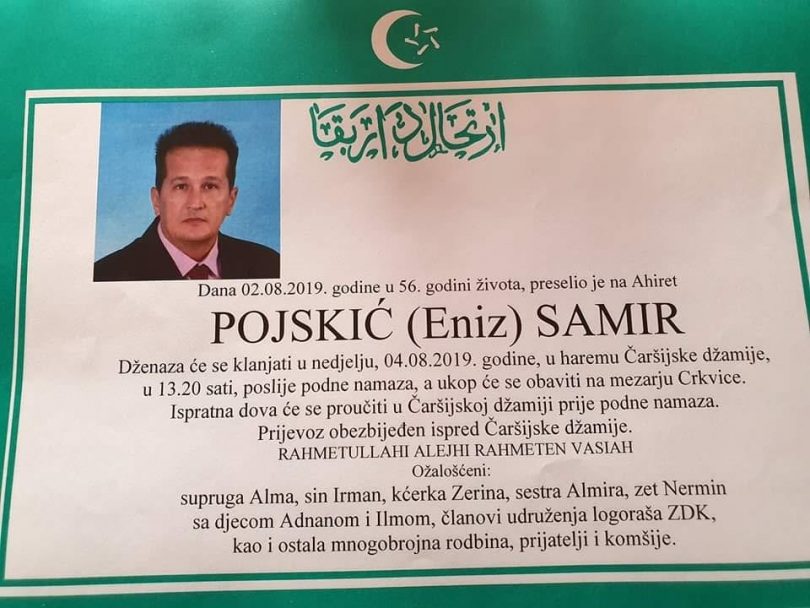 Posljednji pozdrav Samiru Pojskiću – Napustio nas je Samir Pojskić, dugogodišnji aktivista, predsjednik Udruženja logoraša Zeničko-dobojskog kantona, borac za ljudska prava, sapatnik i suputnik, stijena, ljudina. Tek 56 godina, srce ga je iznevjerilo, srce koje je toliko puta dao drugima, na sebe je preuzimao njihov bol i tugu, odagnao bol tolikih ljudi koji su mu dolazili i tražili podršku.