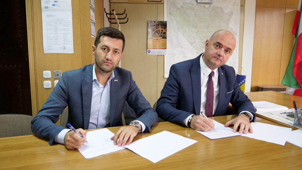 Ministar za poljoprivredu, šumarstvo i vodoprivredu Zeničko-dobojskog kantona Mirsad Hadžić i direktor privrednog društva “Oaza” d.o.o. Tešanj Armin Hrvić potpisali su danas ugovor o prijenosu prava i obaveza iz Ugovora o koncesiji sa privrednog društva “TEŠANJSKI KISELJAK” d.o.o. Tešanj na privredno društvo “Oaza” d.o.o. Tešanj.