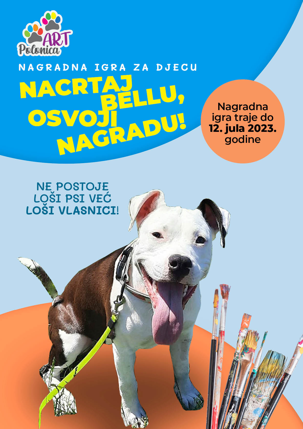 - Bellu crtate u ambijentu koji želite i sa motivima koji su vaš izbor ali na svakom crtežu mora pisati: „NE POSTOJE LOŠI PSI VEĆ LOŠI VLASNICI!“