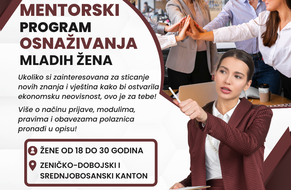Mentorski program osnaživanja mladih žena dio je projekta „Decreasing outmigration by increasing opportunity: A professional mentoring and career enhancement project for women in Zenica Doboj Canton“ kojeg podržava Američka ambasada u Bosni i Hercegovini.