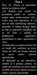 Konkretno, predlaže se da naknada za prekovremeni rad ne može biti uvećana za iznos manji od 20 posto od iznosa satnice za puno radno vrijeme zaposlenika.