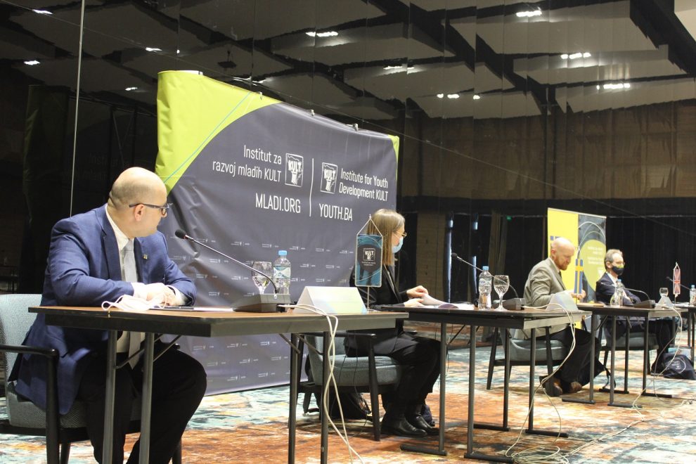 Predstavnici ambasada u BiH i mladi političari saglasni važnosti demokratskih procesa u BiH – Predstavnici tri ambasade u BiH danas su razgovarali sa 12 mladih političara iz 8 političkih stranaka, a koji su dio lokalne vlasti u 11 zajednica u BiH. Mladi političari bili su polaznici Obuke Uči, misli i djeluj za omladinske političke liderice i lidere UMiDp, koju već tri godine organizira Institut za razvoj mladih KULT.