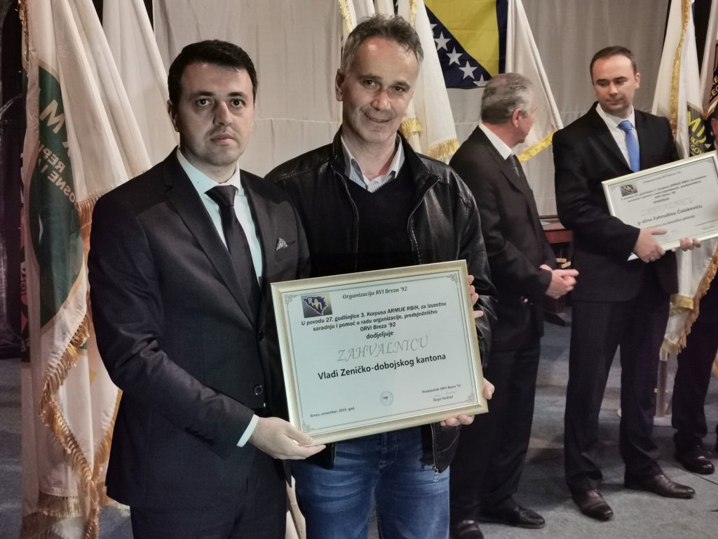 Predstavnici Organizacije ratnih vojnih invalida Breza ’92 uručili su ovom prilikom premijeru Ganiću i ministru Čolakoviću zahvalnice za izuzetnu saradnju i pomoć u radu ove organizacije.