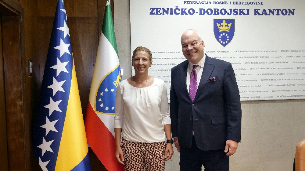 Premijerka Zeničko-dobojskog kantona Amra Mehmedić razgovarala je u svom uredu sa šefom Misije Organizacije za evropsku bezbjednost i saradnju u BiH (OSCE) Brianom Aggelerom o planovima i aktivnostima Vlade Zeničko-dobojskog kantona na polju obrazovanja, odnosno kurikularne reforme te borbe protiv korupcije.