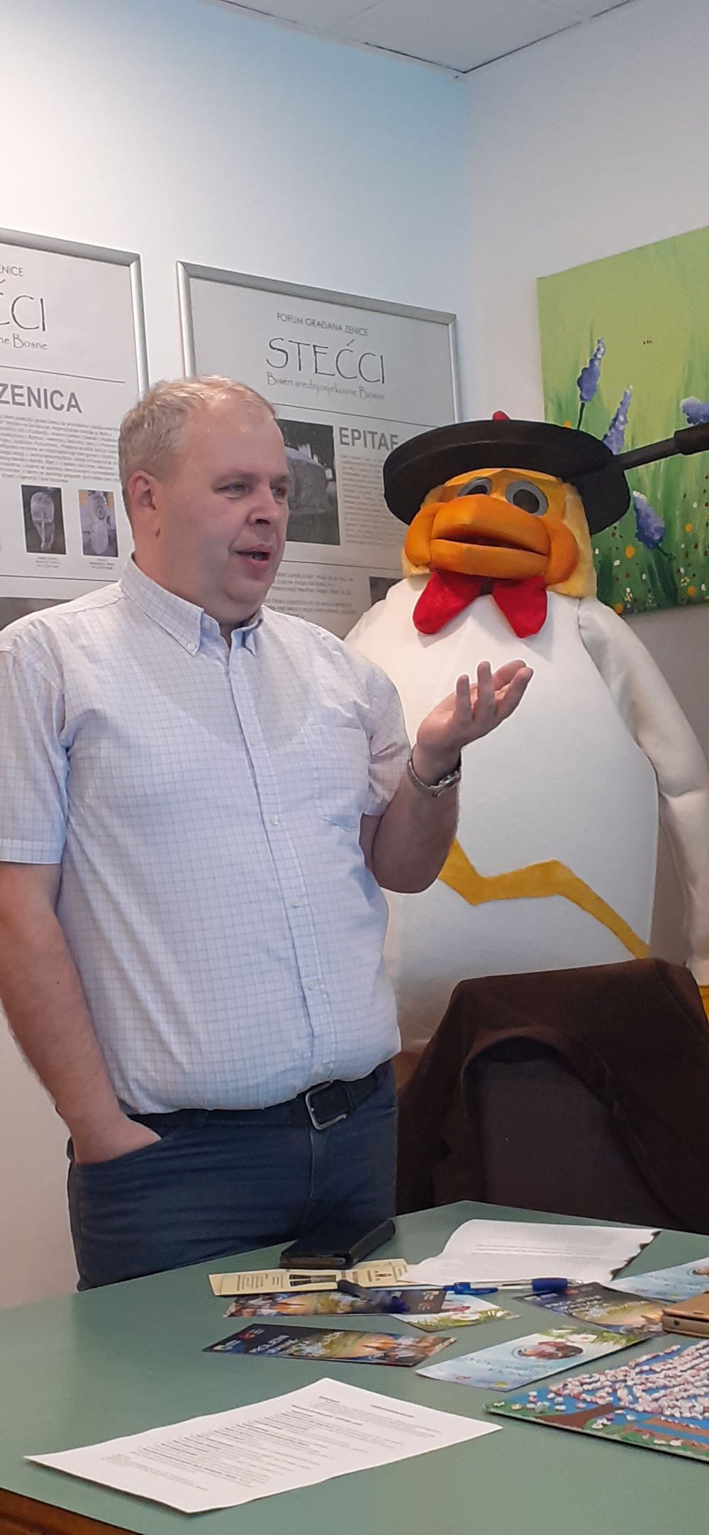 13.Promotivne aktivnosti pred utakmicu BiH–Ukrajina: Maskota Čimburijade i članovi foruma u sa gostima i navijačima, druženje i promotivne aktivnosti na platou kod zapadne tribine stadiona Bilino polje.