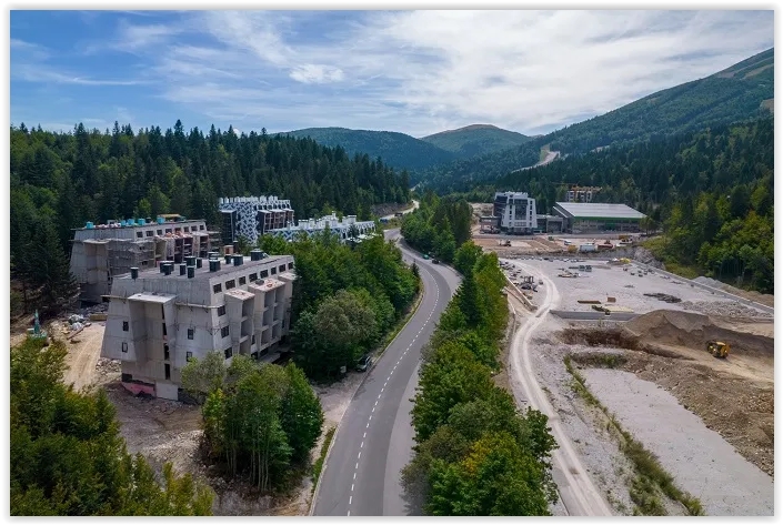 Radovi na izgradnji poslovno-sportskog centra Trnovo smještenog na površini od 11,21 hektara, na nadmorskoj visini od oko 1.300 m, u blizini Babinog dola, centra sportsko-rekreativne zone planine Bjelašnica značajno su napredovali.