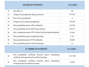 Ukupni broj aktivnih pretplata mobilne mreže je u odnosu na 2020. (3.509.674) u porastu 3.728.775.