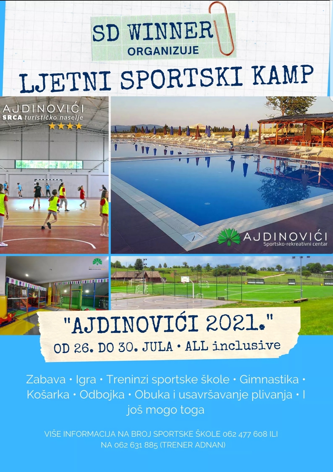 Ljetni Sportski kamp “Ajdinovići 2021” će trajati od 26. do 30. jula 2021. godine. Prijaviti se možete na našoj stranici Sportska škola Zenica ili na broj 062 477 608 ili 062 631 885.