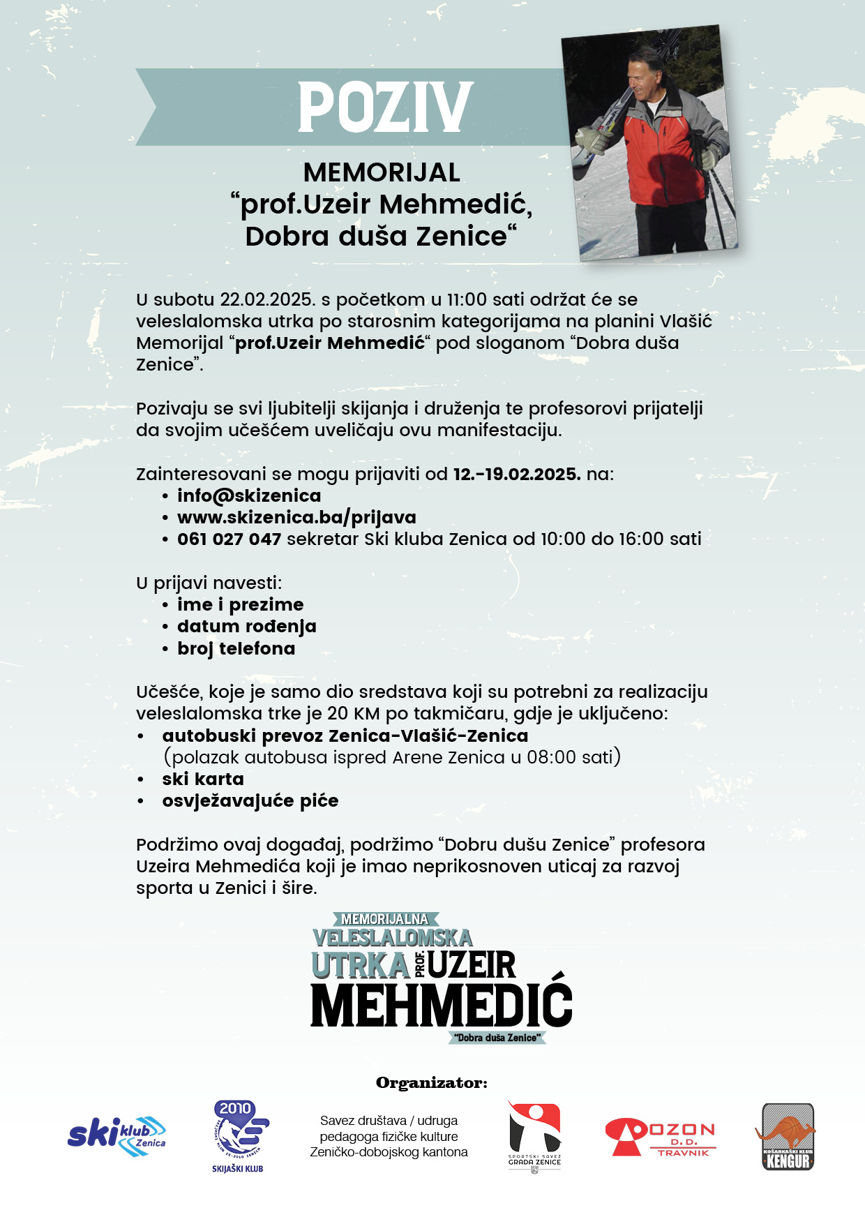 Pozivaju se svi ljubitelji skijanja i druženja te profesorovi prijatelji da svojim učešćem uveličaju ovu manifestaciju.