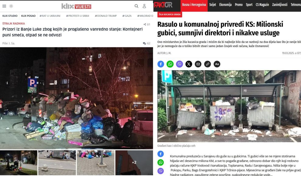 Banja Luka zatrpana smećem, haos u komunalnoj situaciji Sarajeva. Naslovi o komunalnom neredu “zatrpavaju” portale kako u većim, tako i manjim gradovima BiH, ali i regiona.