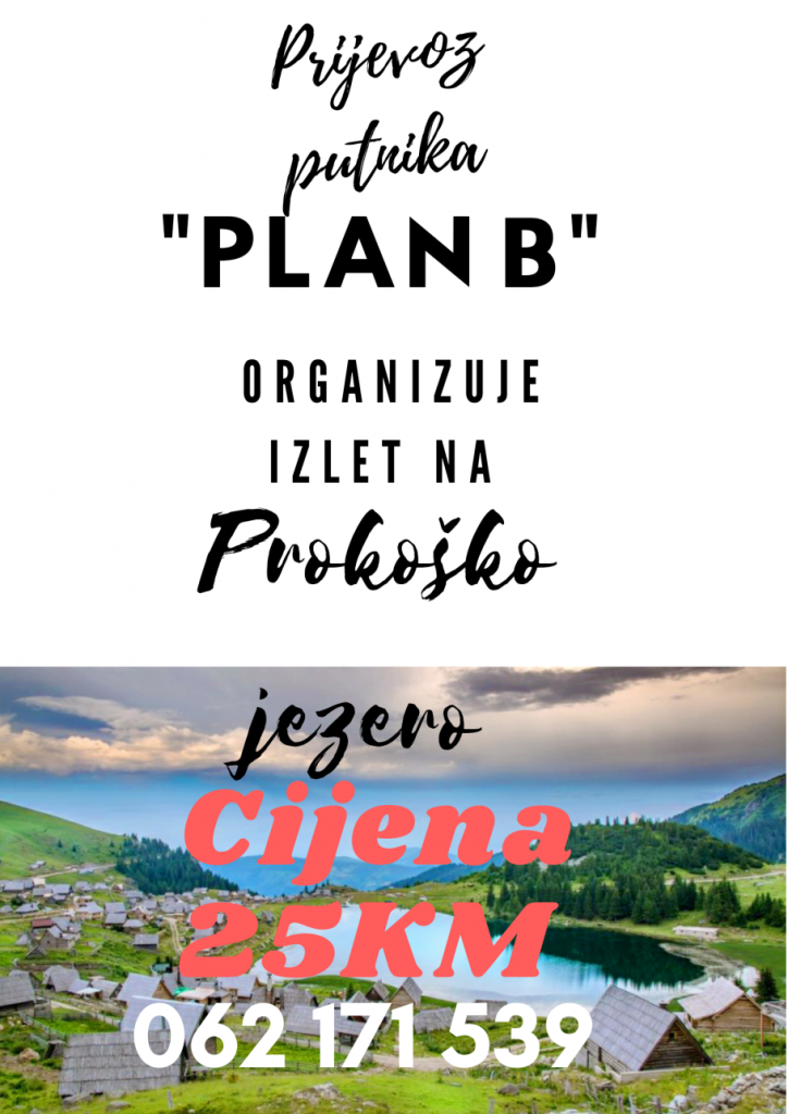Prijevoz putnika “Plan B” – jednodevni izlet na Prokoško jezero 29. august – #prijevozputnikaplanb organizuje jednodnevni izlet na Prokoško jezero, 29.08.2020.
