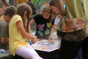Još nešto jako lijepo – uspjeli smo da jednu zajedničku mandalu – cvijet ocrtamo sa korisnicima ustanove za djecu i odrasle sa poteškoćama u razvoju pa nam je jako bilo lijepo druženje. Malo smo im obojili dvorište, zidove i učinili taj neki prostor ljepšim. U parku je tresla jako lijepa muzika, omladina se družila, plesala…